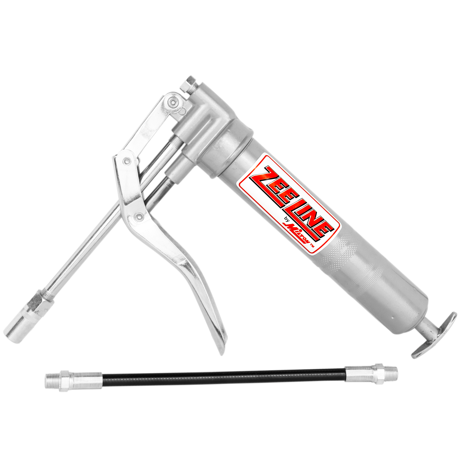 This mini pistol action Light-Duty grease gun was built with Do-It-Yourselfers in mind and can be used with 3 oz. cartridges. This grease gun includes a standard pipe and 9-inch whip hose in case you encounter any hard-to-reach places that a rigid extension pipe can’t reach so you can keep working without interruption.