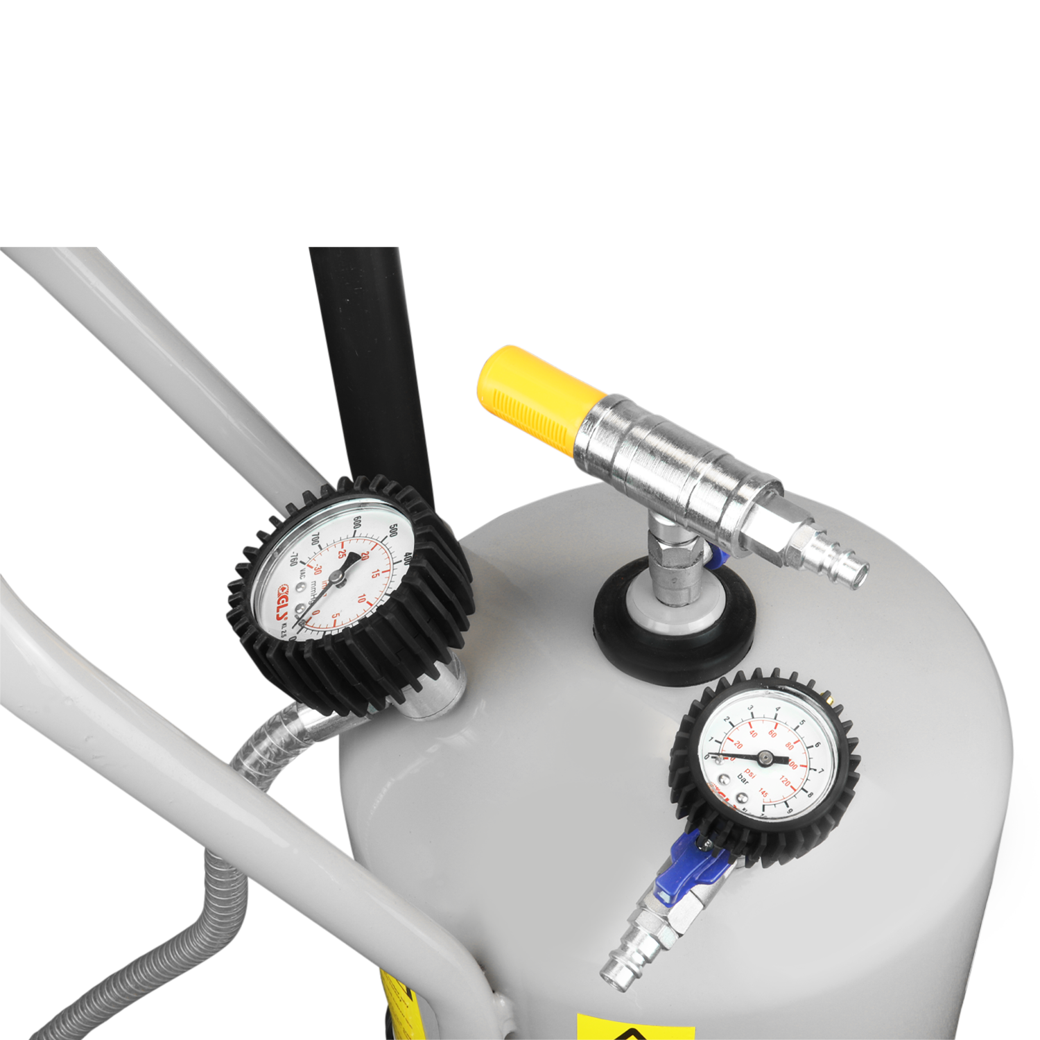 - Simple Air Evacuation: Evacuate the drain by using an air connection and connecting to the drain. No need to invest in more expensive diaphragm pump systems to evacuate.