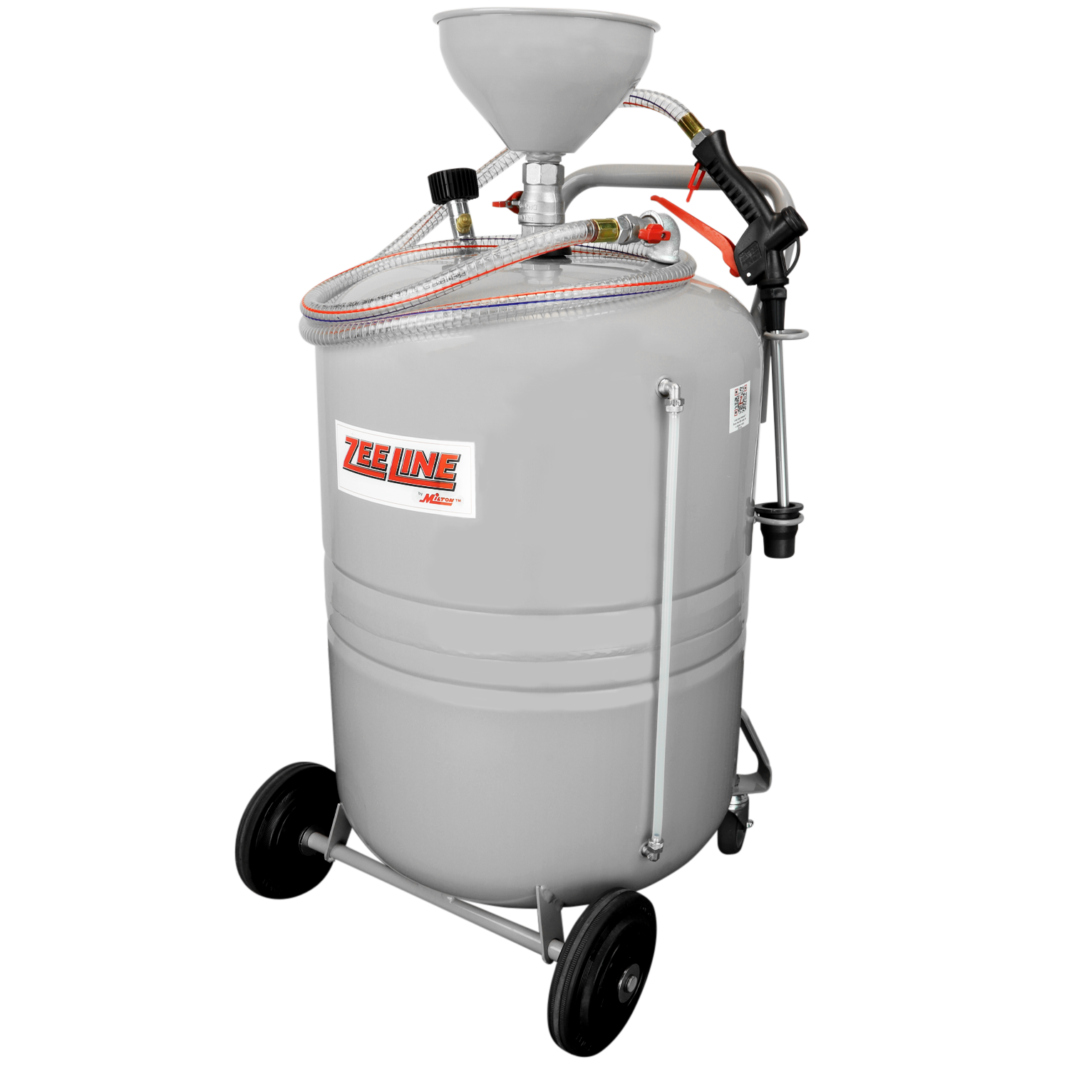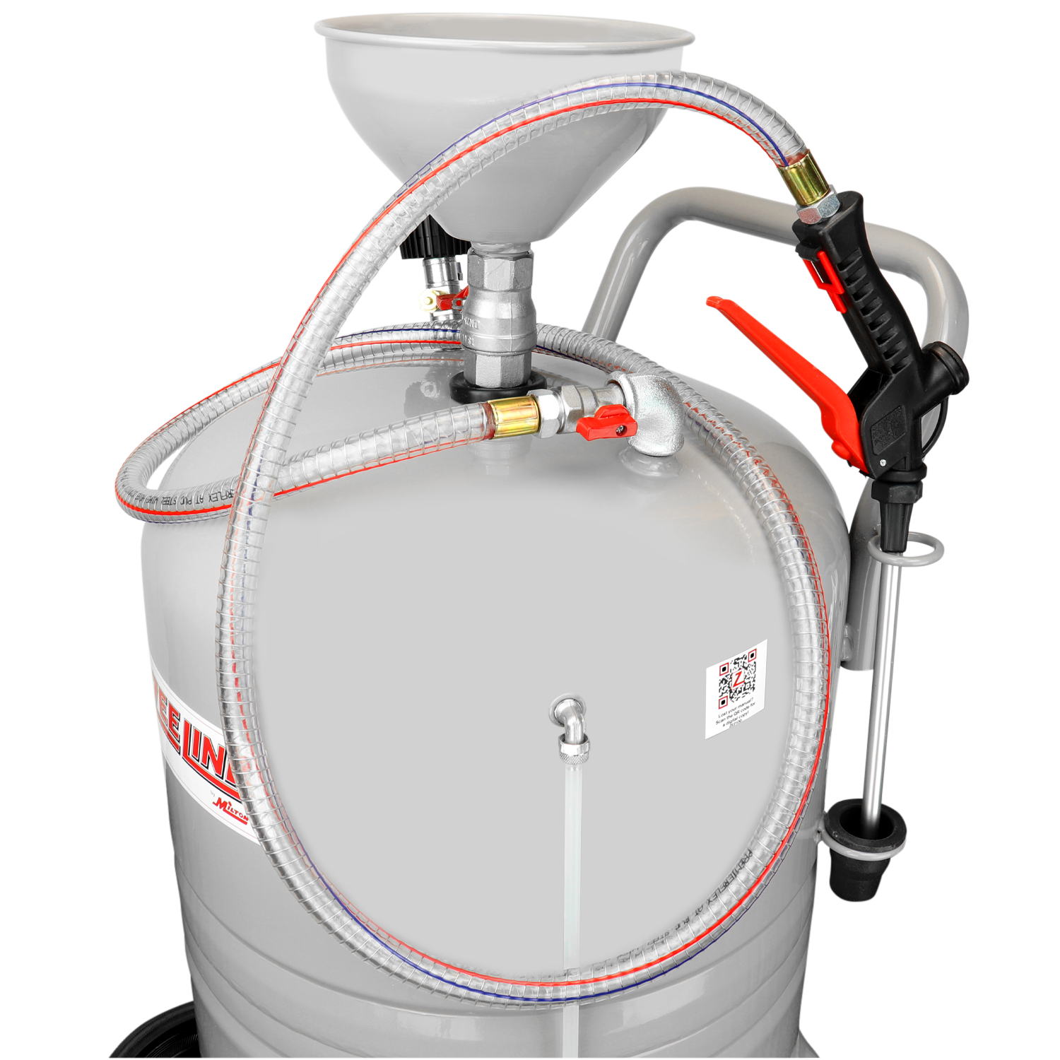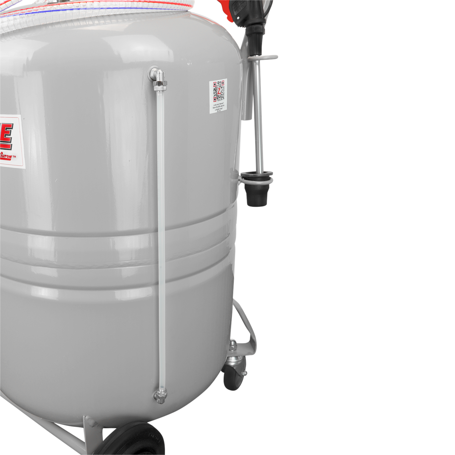 This 21-Gallon Oil Dispenser was built with professionals in mind and was designed to dispense oil-based fluids around the shop without being attached to an overhead dispensing system. This oil dispenser can conveniently deliver oil to an engine, transmission, differential, or crankcase and includes a convenient built-in funnel w/screen that makes refilling more convenient and efficient.