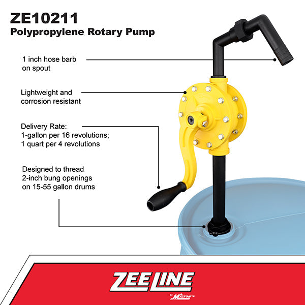This two-vane rotary hand pump was built with professionals in mind and is constructed from polypropylene and fluorinated hydrocarbons, making this pump ideal for DEF, petroleum products, water-based chemicals, and chlorinated solvents. This pump dispenses at a rate of 1 gallon per 16 revolutions or 1 quart per 4 revolutions and includes a 1-inch hose barb spout.