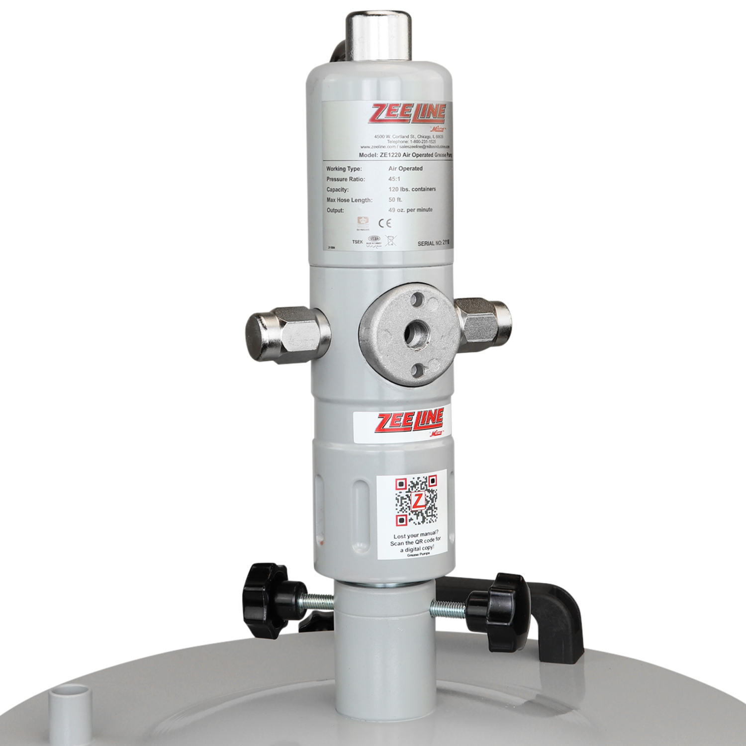 This 45:1 Piston Pump was built with professionals in mind and was designed to be used with industrial and automotive type grease. This versatile pump can be mounted 120 LBS Grease Kegs and is intended to be used with Zeeline by Milton Drum Covers.