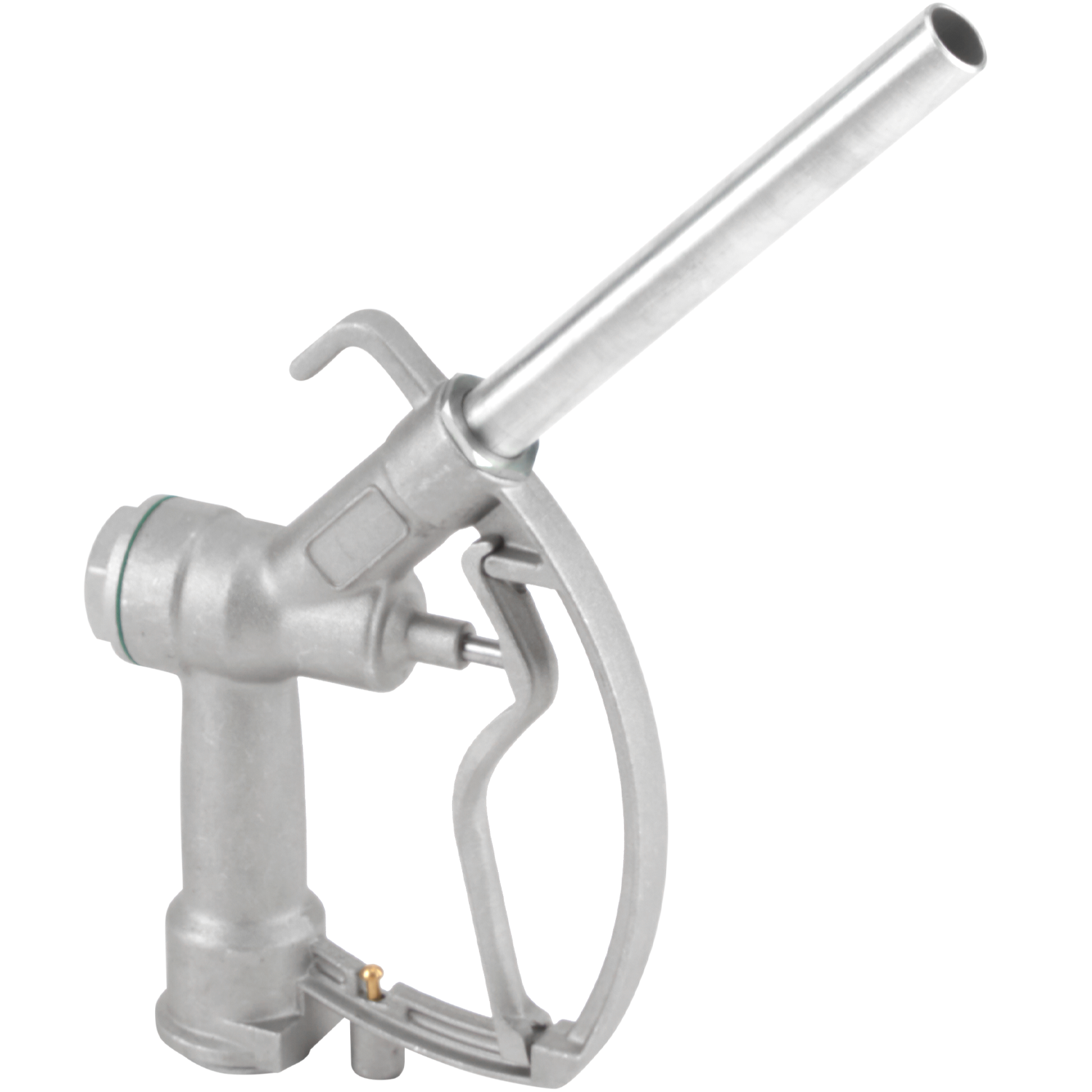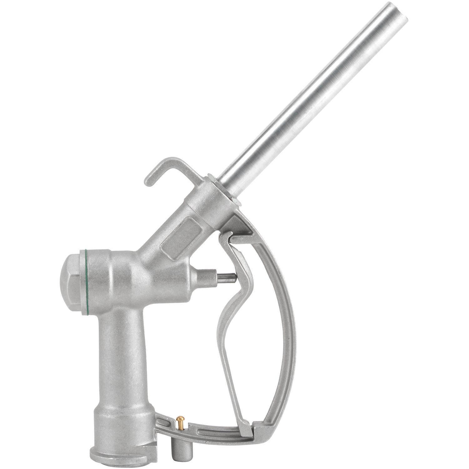 This Aluminum Fuel Nozzle was built with professionals in mind and is designed for use with manual and electric fuel transfer pumps. The lightweight aluminum nozzle is easy to maneuver and includes an integrated lock on the trigger for hands free dispensing. With a 3/4” NPT thread and 3/4” spout this nozzle is compatible with many fuel hoses and can be used to fill a variety of applications.