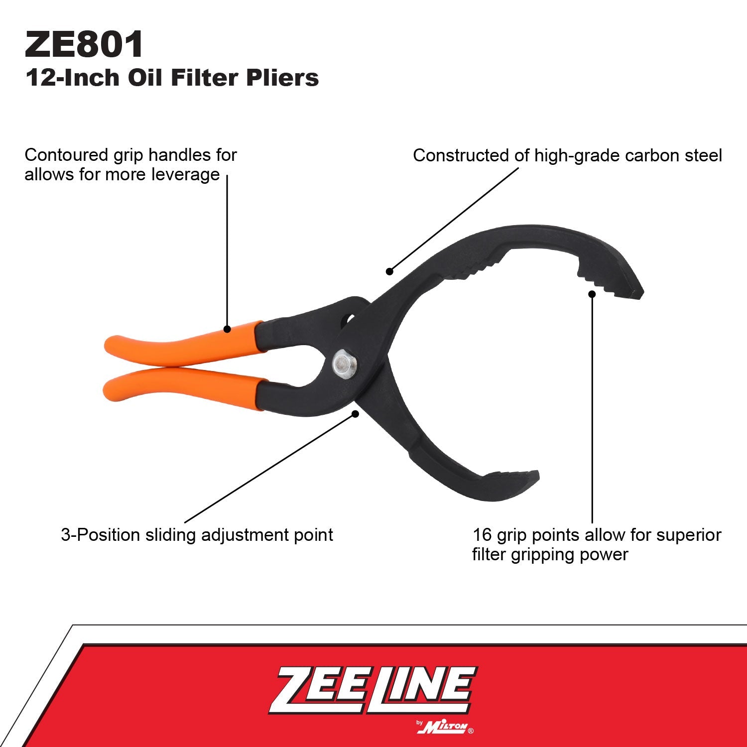 Introducing our 12-inch Professional Grade Oil Filter Pliers, designed with the needs of professionals in mind. These pliers are the ideal tool for working with various spin-on filter types, providing unmatched performance and convenience. We understand the importance of comfort and control when working with oil filters, which is why our pliers feature contoured grip handles. These handles provide a secure and anti-slip hold, ensuring you have the control and leverage you need to tackle even the most stubborn filters with ease. Moreover, these pliers are versatile, with a jaw capacity ranging from 2.5 inches to 4.6 inches, making them suitable for use with common spin-on type filters. Whether you're a professional mechanic or a DIY enthusiast, our Professional Grade Oil Filter Pliers are the tool of choice for efficient and effective filter maintenance.